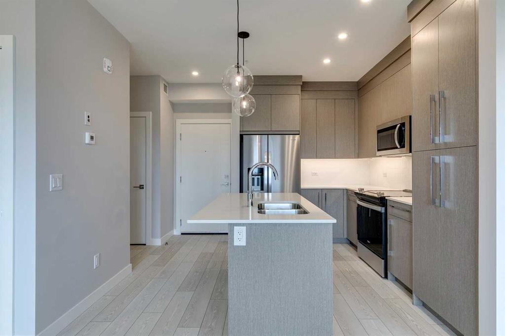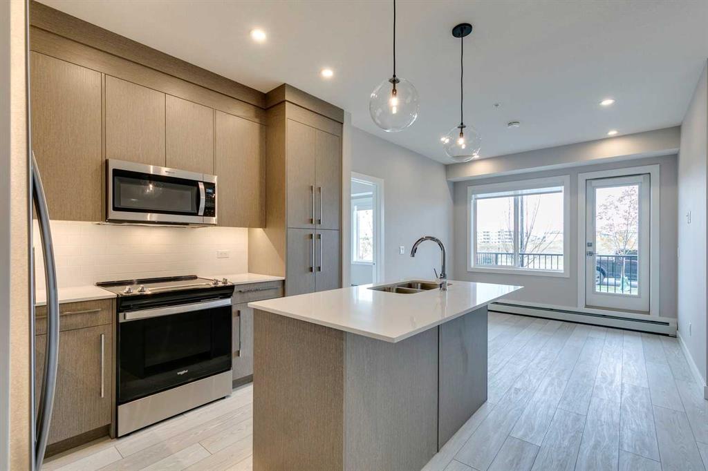 Welcome home to Cavallo in Cityscape by Truman. This brand new 2BR, 2BATH + Den brings comfort, convenience and style and all you need to do is turn the key and move in. Clean, crisp interior with neutral modern palate of colour, luxury vinyl plank flooring extended throughout the open-concept living space creating a seamless flow and a sense of continuity. Beautiful functional kitchen with island, stainless steel appliances, quartz countertops, and load of cabinetry. Convenient 2BR both with access to two separate bathrooms, and the primary includes a walk in closet, the DEN in this plan is a nice extra space for the home office too. Convenient main floor location and balcony to enjoy time outside. The residents of Cavallo enjoy a range of exceptional amenities designed for both relaxation and recreation. The Gym/Fitness Centre is equipped with a weight room, as well as dedicated spaces for yoga and spin classes, catering to all your fitness needs. The Entertainment Lounge/Media Room provides a stylish venue for socializing and enjoying movies or gatherings with friends and family. For pet owners, the Pet Spa includes both washing and grooming stations, ensuring your furry friends receive the care they deserve. Cyclists will appreciate the dedicated Bicycle Storage and Repair Room, making it easy to maintain and store your bike. This is a great opportunity in a great location that’s close to everything that matters. Have a look at the pictures, then call today and schedule a viewing.