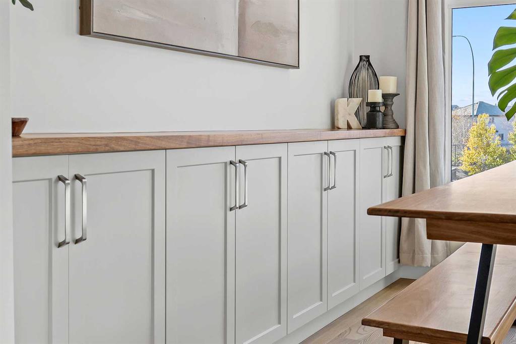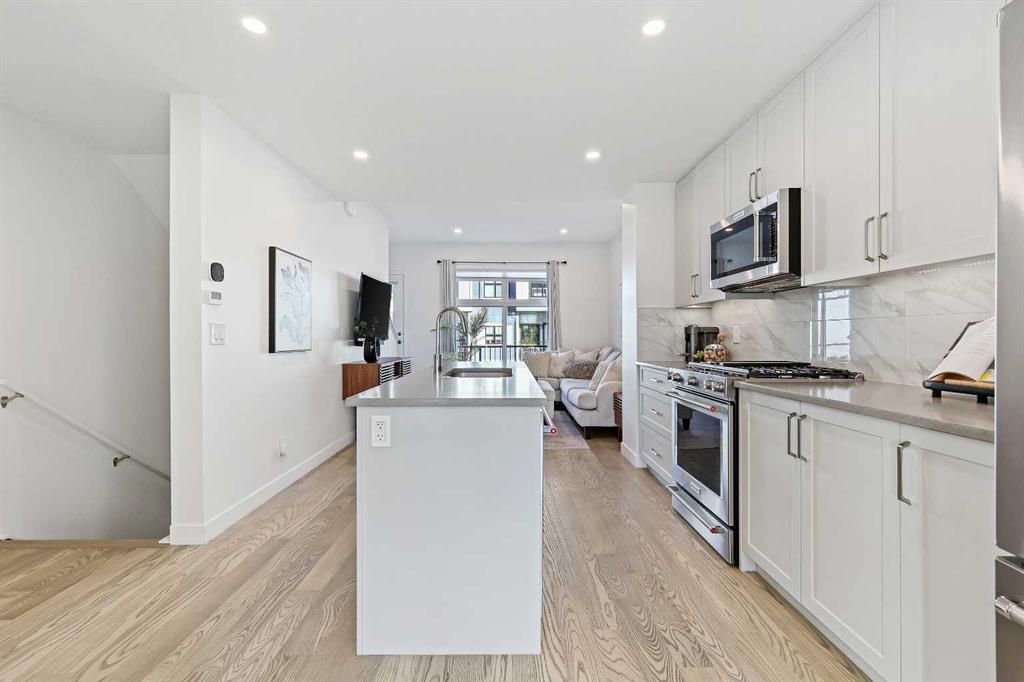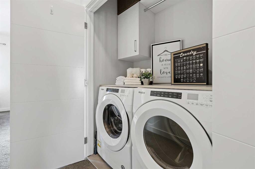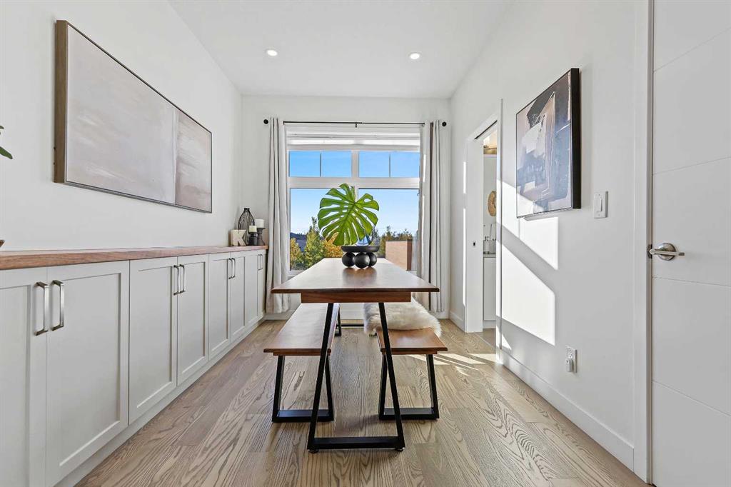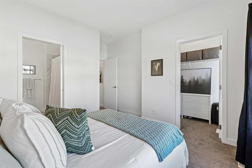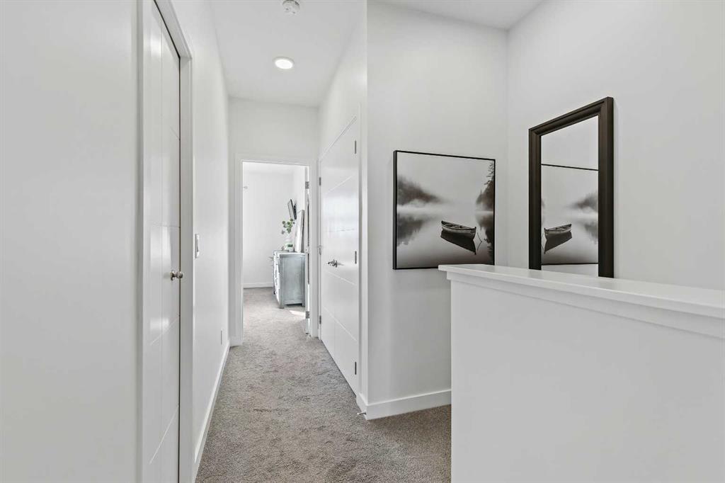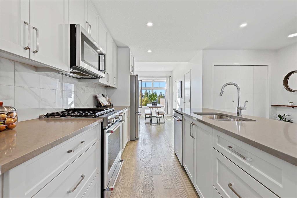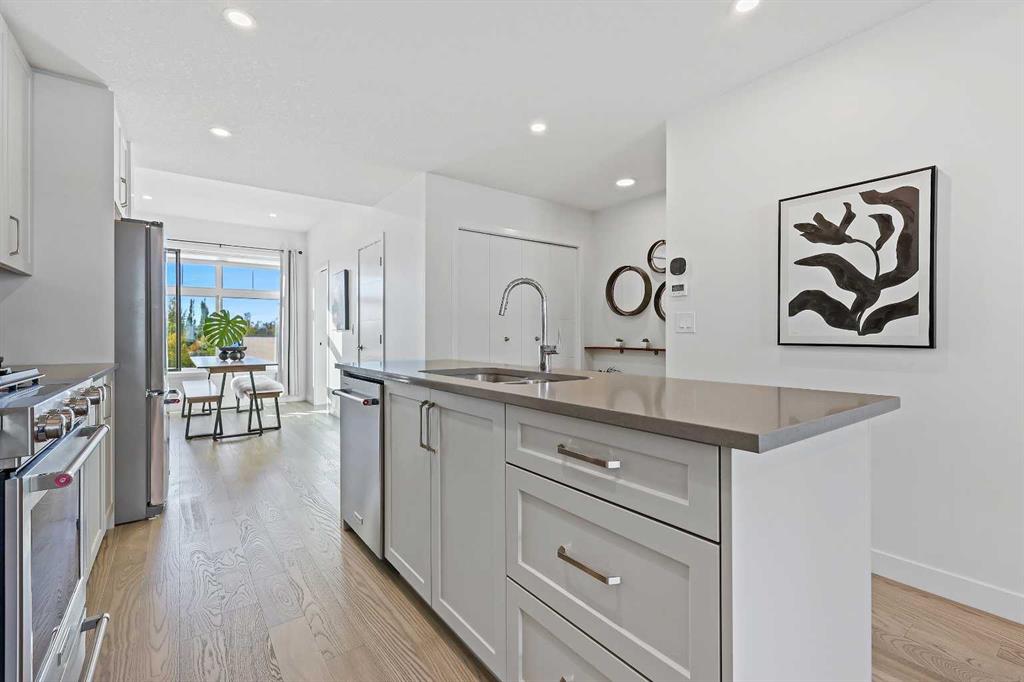 Welcome to this beautifully upgraded 2-bedroom plus flex room, 2.5-bath townhome where thoughtful design and exceptional craftsmanship shine through every detail. Set in the coveted Les Jardins community next to Quarry Park, this home blends stylish living with low-maintenance ease — surrounded by French-inspired gardens, lush green space, and walkable convenience. Step inside and immediately feel the difference — a light-filled, open-concept plan enhanced by soaring ceilings, wide plank hardwood flooring, abundant custom millwork, and purposeful upgrades throughout. The kitchen features extended cabinetry with a matching sideboard and maple countertop, custom pantry shelving, and a redesigned island with added drawers and a full backboard for extra storage and style. The entryway and laundry room continue the custom theme with a built-in coat closet, maple shelving, laundry countertop, and drying rod — all tailored for smart everyday living. Unlike others you’ve seen, just off the heated attached garage you’ll find a versatile main-level office or flex room with its own private entrance — perfect for a home-based business, gym, or creative studio. This added flexibility makes the home ideal for modern lifestyles and work-from-home comfort. Meticulously cared for with fresh paint (2023), A/C serviced (Sept 2024, barely used), carpets and vents cleaned (Sept 2025), and filters (furnace, Lifebreath, and humidifier) changed quarterly. Technology and convenience abound with full Alexa smart-home integration controlling lights, music, doorbell, heating, and air — plus pre-mounted TV wiring, a wireless Ring camera, and solar panels on each unit. The attached heated garage even features hot and cold water hookups, perfect for year-round use. Outside, life at Les Jardins feels like a retreat — enjoy 70,000 sq. ft. of manicured gardens, a gym, community gardens, outdoor lounge areas with umbrellas and fire pits, and even a dedicated dog play park near the underground entrance. Everything you need is right here. This home perfectly balances luxury, practicality, and peace of mind — all in one of Calgary’s most thoughtfully designed communities. Come experience the beauty, the care, and the lifestyle that truly set this one apart. You won’t be disappointed.
